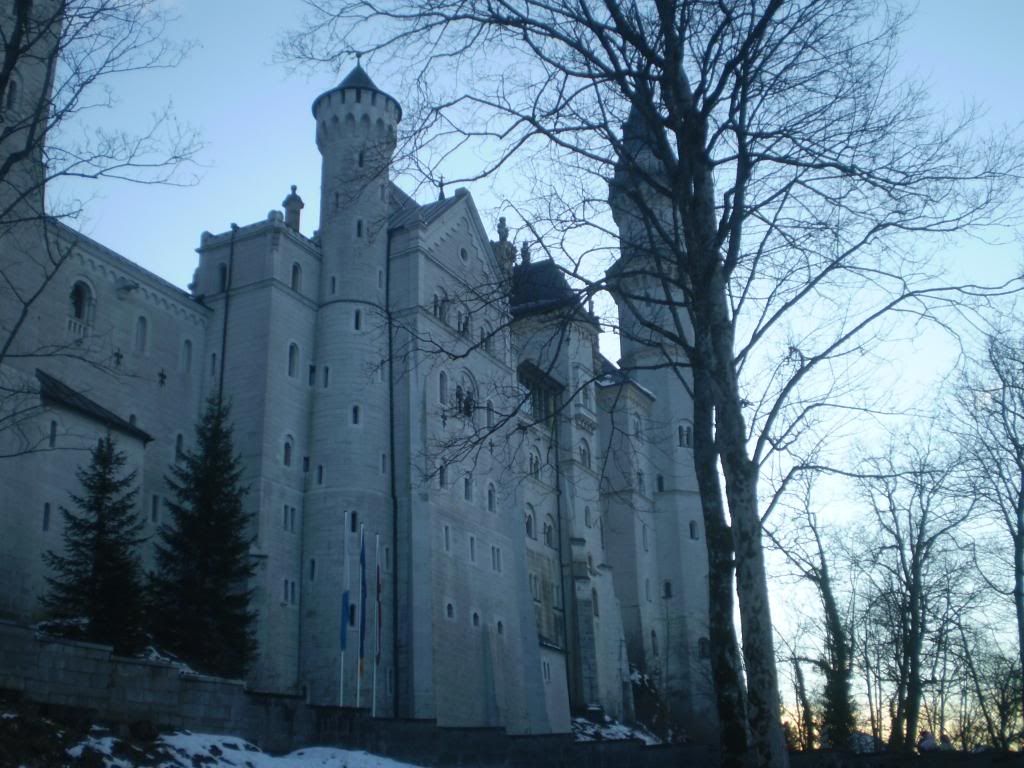 Füssen reverbera entre estas cuerdas porque aloja la villa más cercana a los castillos más famosos de la Germania: Neuschwanstein y Hogenschawngau. Ambos pertenecieron a la estirpe de los Caballeros del Cisne (schwan en el idioma), ahora extinta, como todos los otros caballeros. En su tiempo fueron casas de verano de los altísimos y servían múltiples funciones: dormitorios para comitivas extranjeras, pabellones para las artes, despliegues de arte y sutileza, reliquias que observan las maravillas naturales del entorno. Ahora son focos turísticos prestigiosos. Tan sólo el primero de los castillos nombrados reúne un millón y medio de visitantes al año. No es de extrañar. Ludwig II, como pocos, logró en vida un sueño. Poco importa su tiempo como rey, el legado de las tantas piedras que edifican castillos es lo que sobrevive. Füssen está situado a unos cinco kilómetros de los castillos por lo que uno puede disfrutar de una caminata en medio de la nieve y deleitarse con un paisaje no apto para regiones cercanas a los trópicos, tal como aquellos que aún no han visto el mar y caen hechizados ante su oleaje sempiterno. La modernidad y sus designios quizá también son inescrutables. Fue por ello que aún cuando la entrada a los suntuosos palacios pétreos distaba de la ecuanimidad el deseo por recorrer sus muros y sus escalinatas, así como visitar sus habitáculos y habitaciones, socavó la duda. De paso nos topamos con otros viajeros, Bridget y Tyler, vecinos del norte, que visitaban Füssen por la misma razón. Nació el confort de la tarabilla e intercambiamos lo justo necesario, acudimos a una prestación: reencontrarnos en München, la próxima parada en el trayecto de la película The 38 Strings. La mera descripción de los edificios abarcaría amplias páginas. La impresión que suscitan acaso pueda matizarse más de una manera visual que escrita. Aún carecemos los editores ociosos (quienes realizan las intercalaciones que incluyen leyendas como nota del editor entre párrafos aquí, allá) de lo estelar para la narrativa, sentimos que nuestra estrella está lejana pese a que pensemos en ella, como navegante intrépido, constantemente. Que las imágenes hablan por sí solas, lectores.